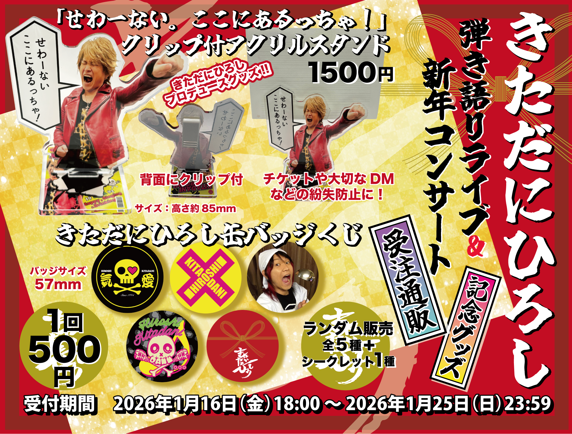 きただにひろし 弾き語りライブ & 新年コンサートのオフィシャルグッズの受注再販が決定しました!